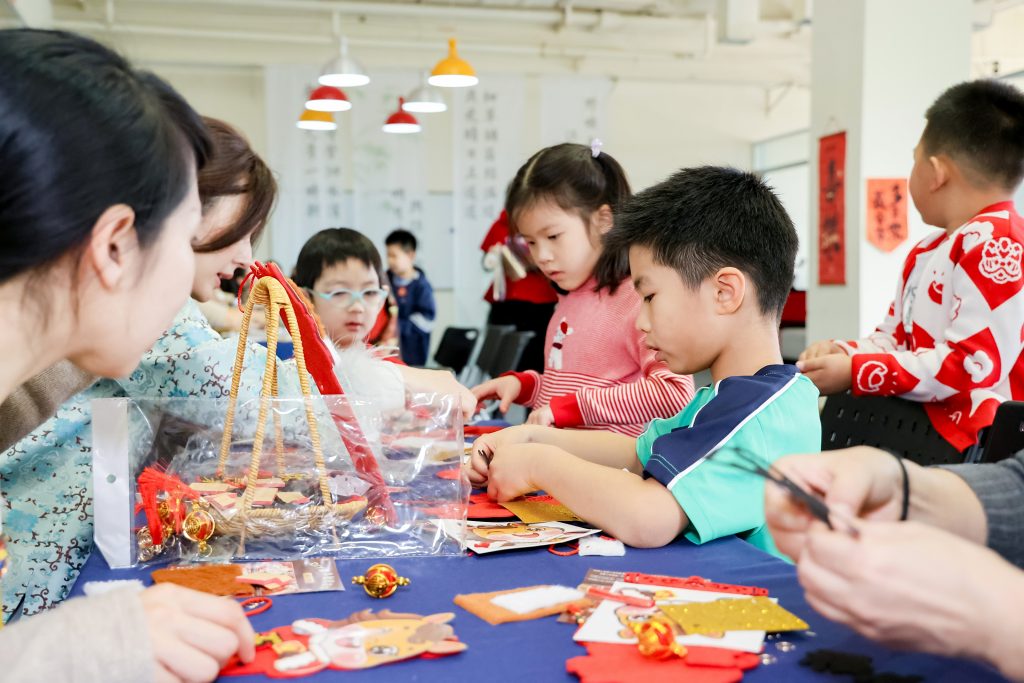 In the Lower School Temple Fair, teachers and parent volunteers divided the work and cooperated, overflowing with childlike innocence and joy. Centered on traditional cultural experiences, the temple fair set up rich and diverse fun segments, and the figures of parent volunteers were also active in every corner: