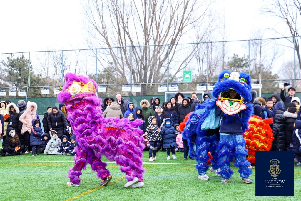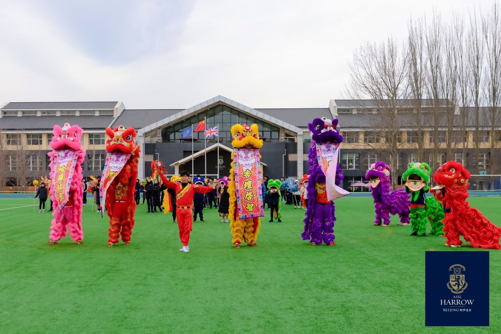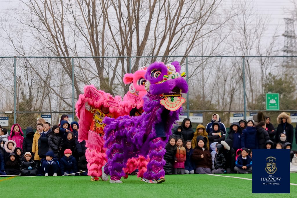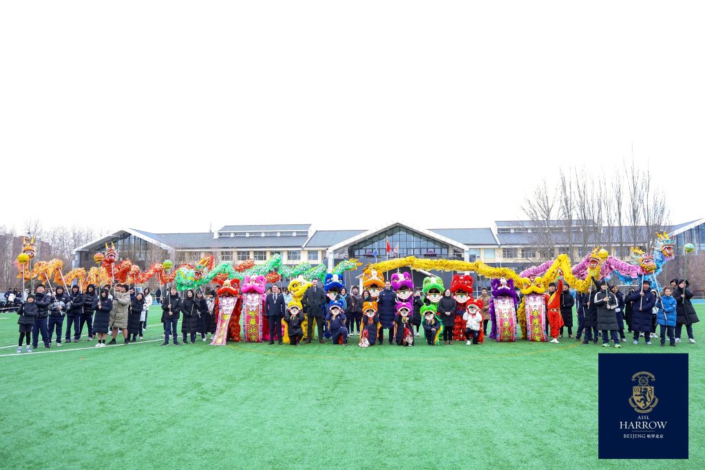 In addition to the themed temple fair, the climax of Harrow Beijing’s Spring Festival celebrations was the gathering of all teachers and students on the playground to witness the visual feast of the Dragon and Lion Dance jointly presented by the six House representative teams of the Upper School. With long dragons tossing and mighty lions leaping, students and coaches cooperated tacitly, vividly interpreting Harrow Beijing’s core value of “Fellowship.”